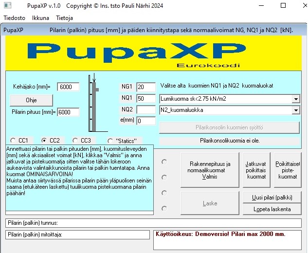 Pupax-laskentaohjelman uusin versio on PupaX5 v.1.40.